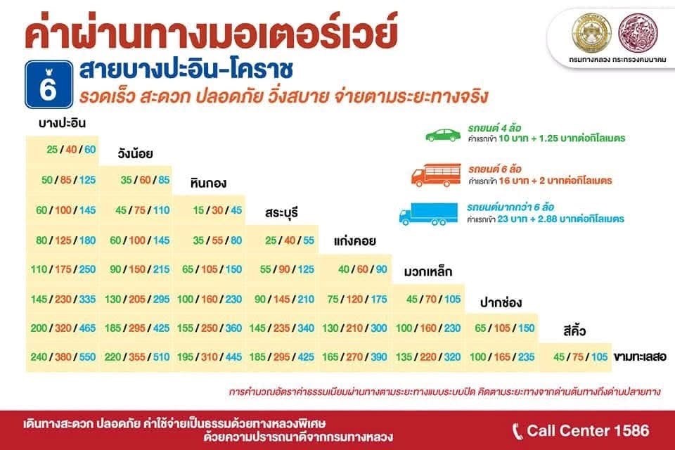 เรื่องทั่วไป / forward mail หรือ จดหมายส่งถึงกัน / เปิดอัตราค่าผ่านทาง "มอเตอร์เวย์ M6" บางปะอิน-โคราช ขึ้นแล้วต้องจ่ายเท่าไหร่