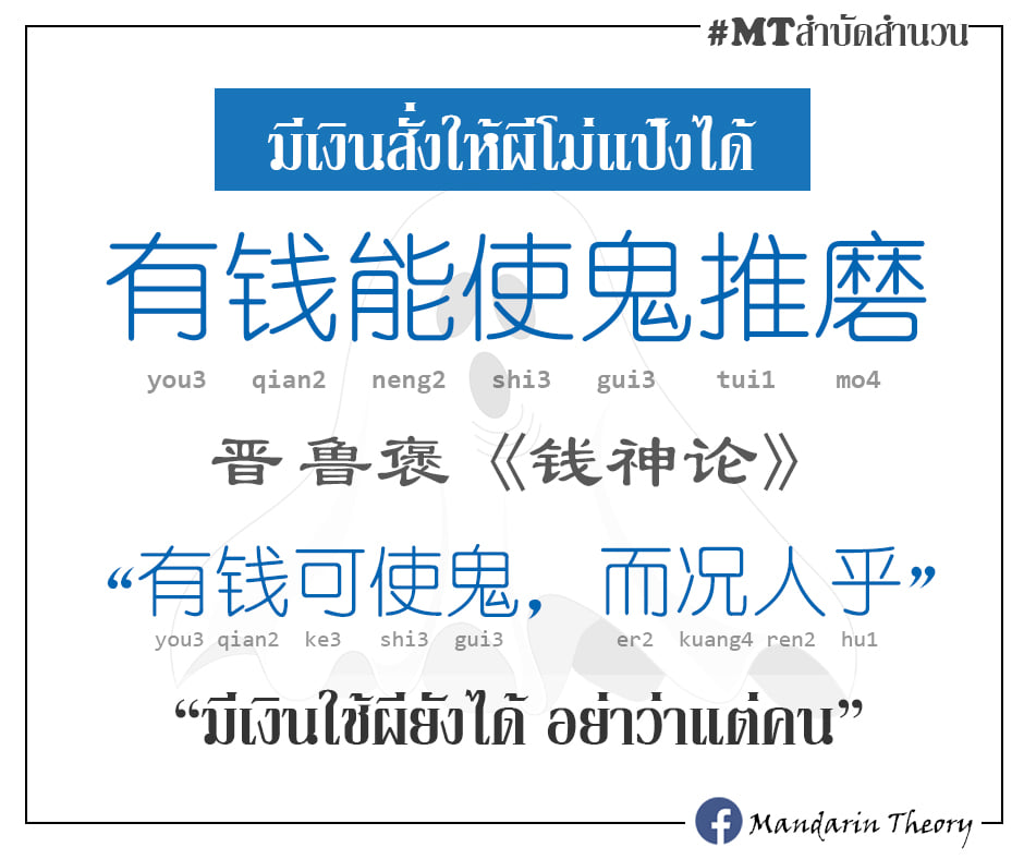 เรื่องทั่วไป / ส่งจิตออกนอก (นั่งเล่นคุยกัน) / Re: มีเงินใช้ผีโม่แป้งได้ | 有钱能使鬼推磨 - โหย่ว เฉียน เหนิง ฉือ กุ่ย ทุย หมอ