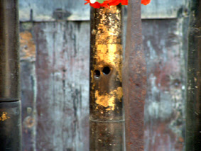 "บริเวณเสาเหล็ก ที่เชื่อกันว่าเป็นรอยกระสุน ของหนานทิพย์ช้าง"