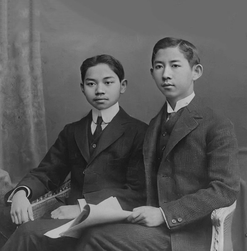 ซ้าย พระบาทสมเด็จพระปกเกล้าเจ้าอยู่หัว รัชกาลที่ 7 ขวา สมเด็จพระมหิตลาธิเบศร อดุลยเดชวิกรม พระบรมราชชนก