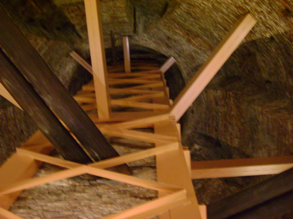 มองย้อนกลับไปด้านล่างจะเห็นว่าทางขึ้นทางลงแคบมาก พอเฉพาะ คนเดียว แต่ตัวบันไดก็ชันด้วย คงทำให้กับท่านผู้มีรูปร่าง สูง คาดว่าคนสมัยก่อน มีรูปร่างสูงนะ