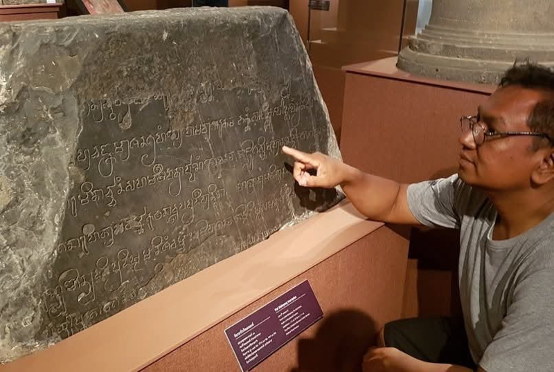 “เขารู้สึก คิด และมีความตั้งใจเกี่ยวกับโลกหน้า เขียนเพื่อการบุญตามความเชื่อตามศาสนา ที่ว่าพุทธศาสนาจะมีอายุ 5,000 ปี เขาอาจจะเขียน เพื่อให้คนรุ่นหลัง พบว่า บริเวณนี้เคยมีพุทธศาสนาปรากฏอยู่ ที่ชัดเจนมากคือเรื่องโลกนี้-โลกหน้า ภาษาสันสกฤตในจารึกโบราณ สมมติเขาทำบุญถวายสิ่งนี้ เขาจะเขียนบอกเล่าว่าเขาเป็นใคร ไม่ได้เขียนว่าทำบุญด้วยสิ่งนี้ 1 ชิ้น เขาจะเล่าเลยว่า ตั้งแต่ต้นวงศ์เป็นใคร ครองเมืองเรื่อยมา เหมือนอย่างปราสาทสด๊กก๊อกธม ก็เล่าว่าใหญ่มาจากไหน เล่าย้อนไป 250 ปี”